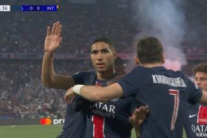 体育资讯06月01日讯 北京时间6月1日3:00,欧冠决赛,巴黎对阵国米,第12分钟,国米出现后防真空,维蒂尼亚直塞穿透,杜埃横传,阿什拉夫破门。